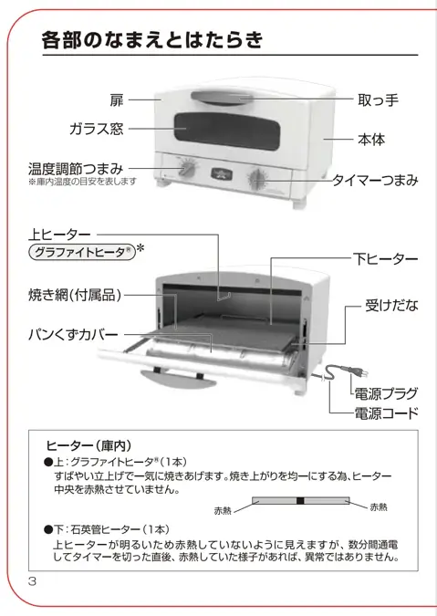 買い替えの始めの頃には少し慣れが必要ですが、説明書に焼き時間の目安が書かれてあるので、まずアラジンの火力に慣れていくのがいいでしょう。