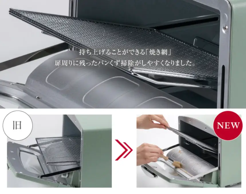 2枚焼きと4枚焼きには焼き網を持ち上げることのできる機能があるので、扉周りの掃除がしやすいです。