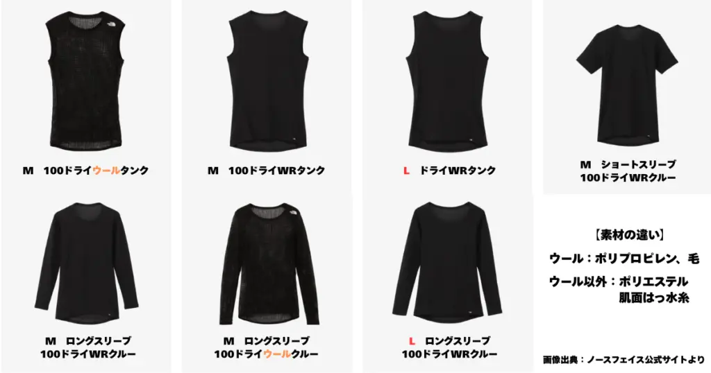 この記事ではノースフェイス・100ドライシリーズのラインナップを整理しながら、ノースフェイス100ドライWRタンクをレビューしてきました。