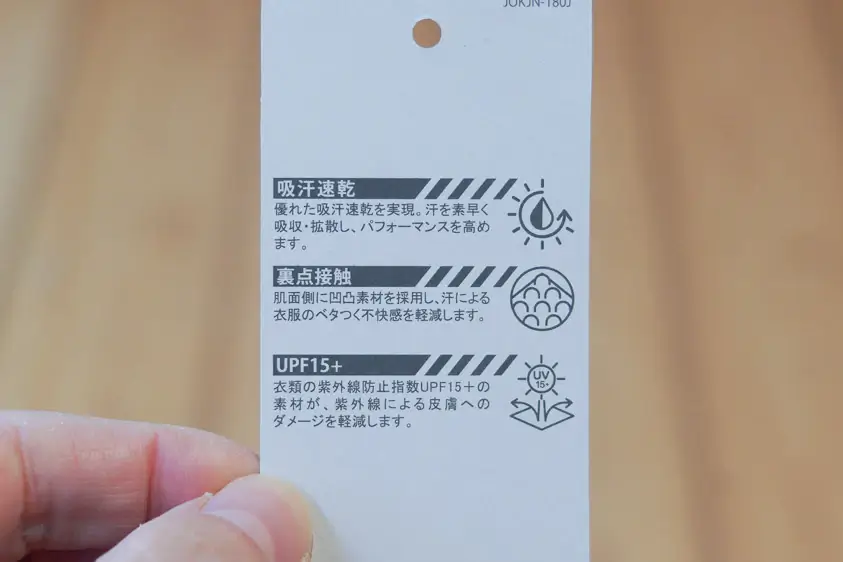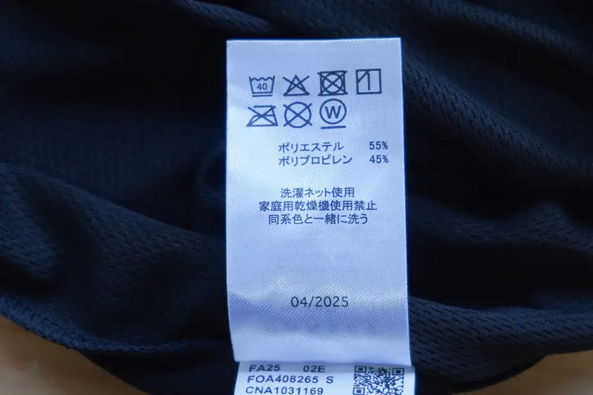 生地にポリプロピレンとポリエステルが使用されており、速乾性が高いです。