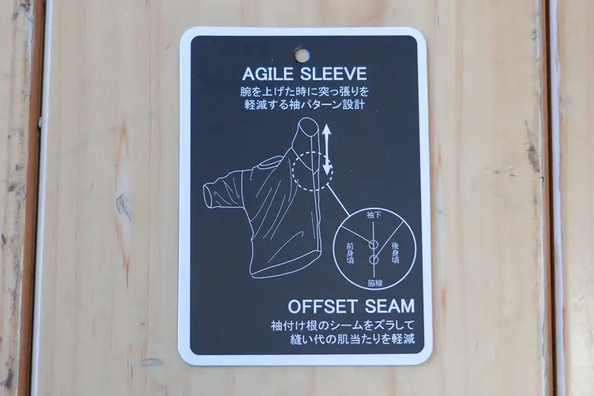 これはテニス向けのTシャツとして作られているからで、付け根のシームをずらして実現しているとのことです。
