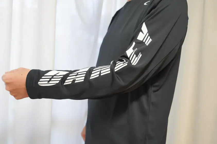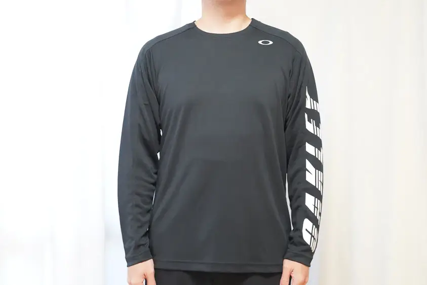 この記事ではオークリー・Slant Logo Print L/S Tee 12.0について実際の着用感をお伝えし、機能・特徴をまとめていきます。