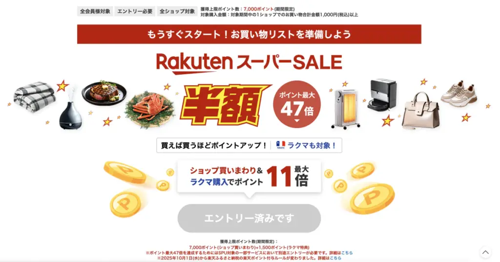 2025年12月の楽天スーパーセールの期間は次のとおりです。